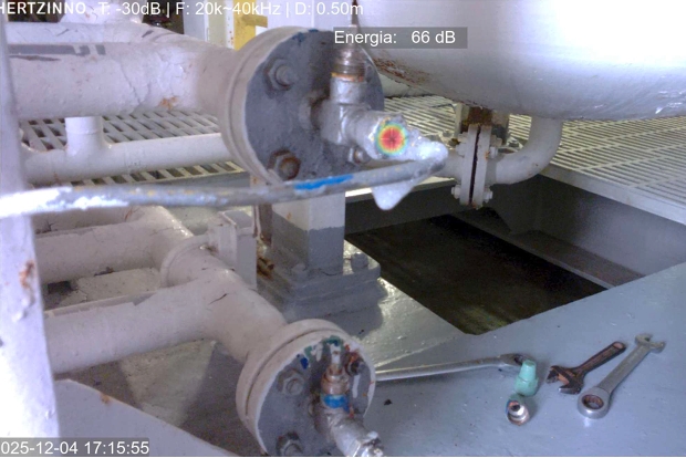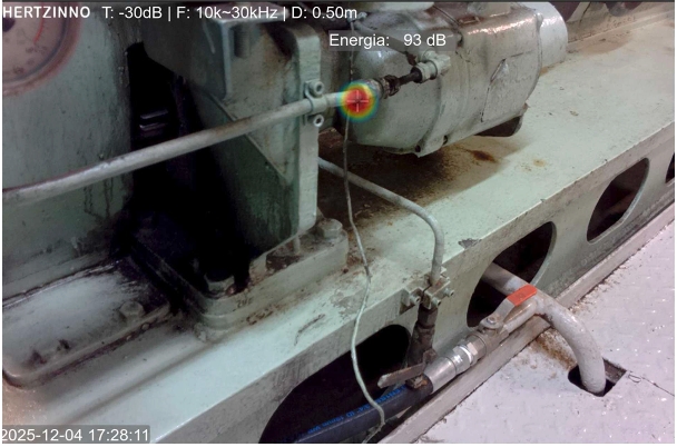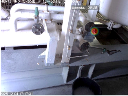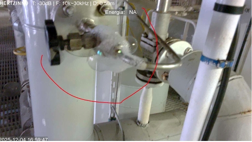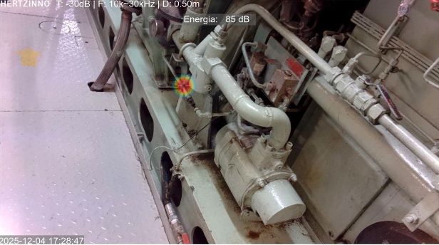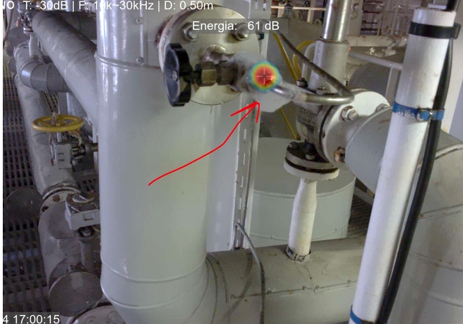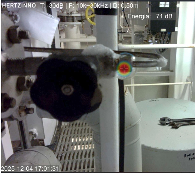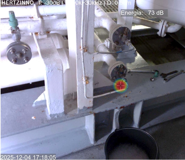 The leak at cargo system detected by HERTZINNO acoustic camera.