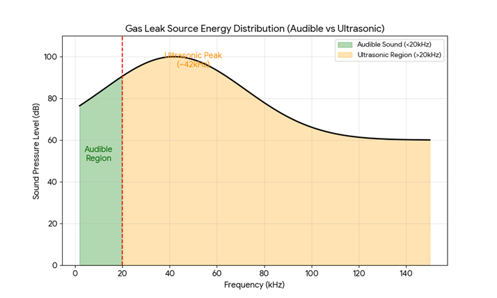 Most industrial background noise—motors humming, gears grinding, fans spinning—is mechanical noise concentrated in the low-frequency audible range (<10 kHz). By using a high-pass filter to ignore everything below 20 kHz, the acoustic camera effectively "mutes" the factory machinery. To the sensor, the background becomes silent, and the ultrasonic signature of the leak shines like a beacon in the dark.